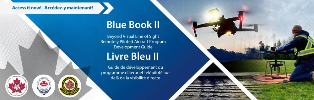 Blue Book II serves as a guide to Fire Departments and Search and Rescue Organizations in the fundamentals of Beyond Visual Line of Sight (BVLOS) RPAS operations, permission applications and management at the level of the organization to enable them to understand the complexities of BVLOS authorization and safe integration into regular operations.